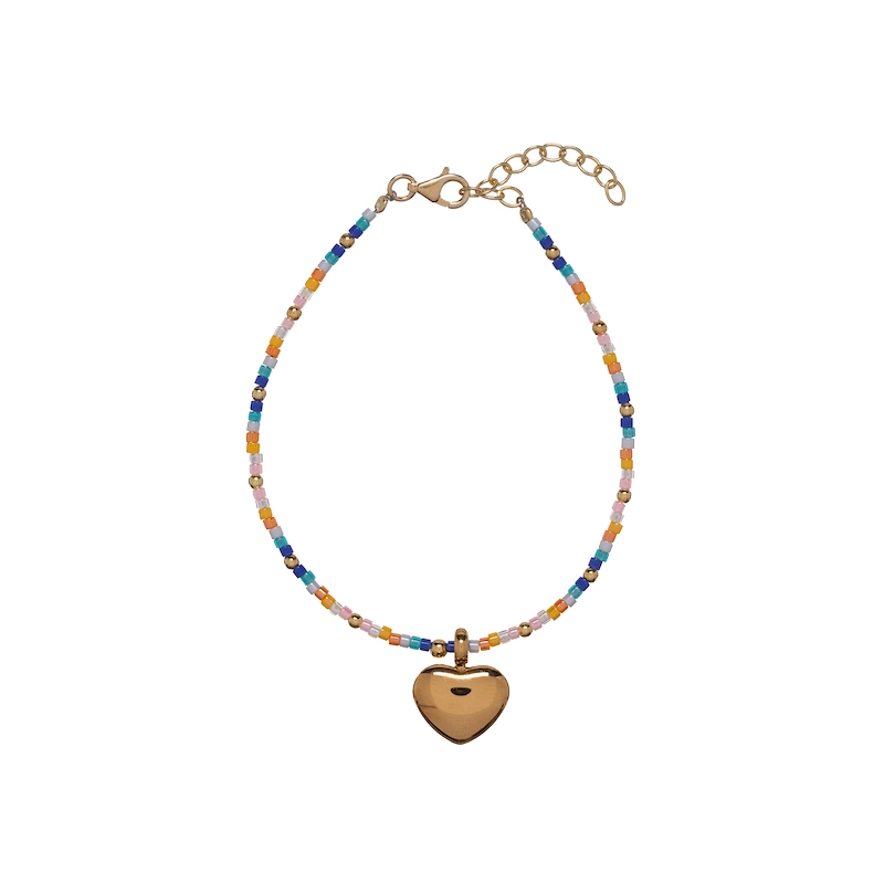 Delikat armbånd med fargerike perler og et gullbelagt hjerte som rommer en liten del av ditt kjæedyrs aske.